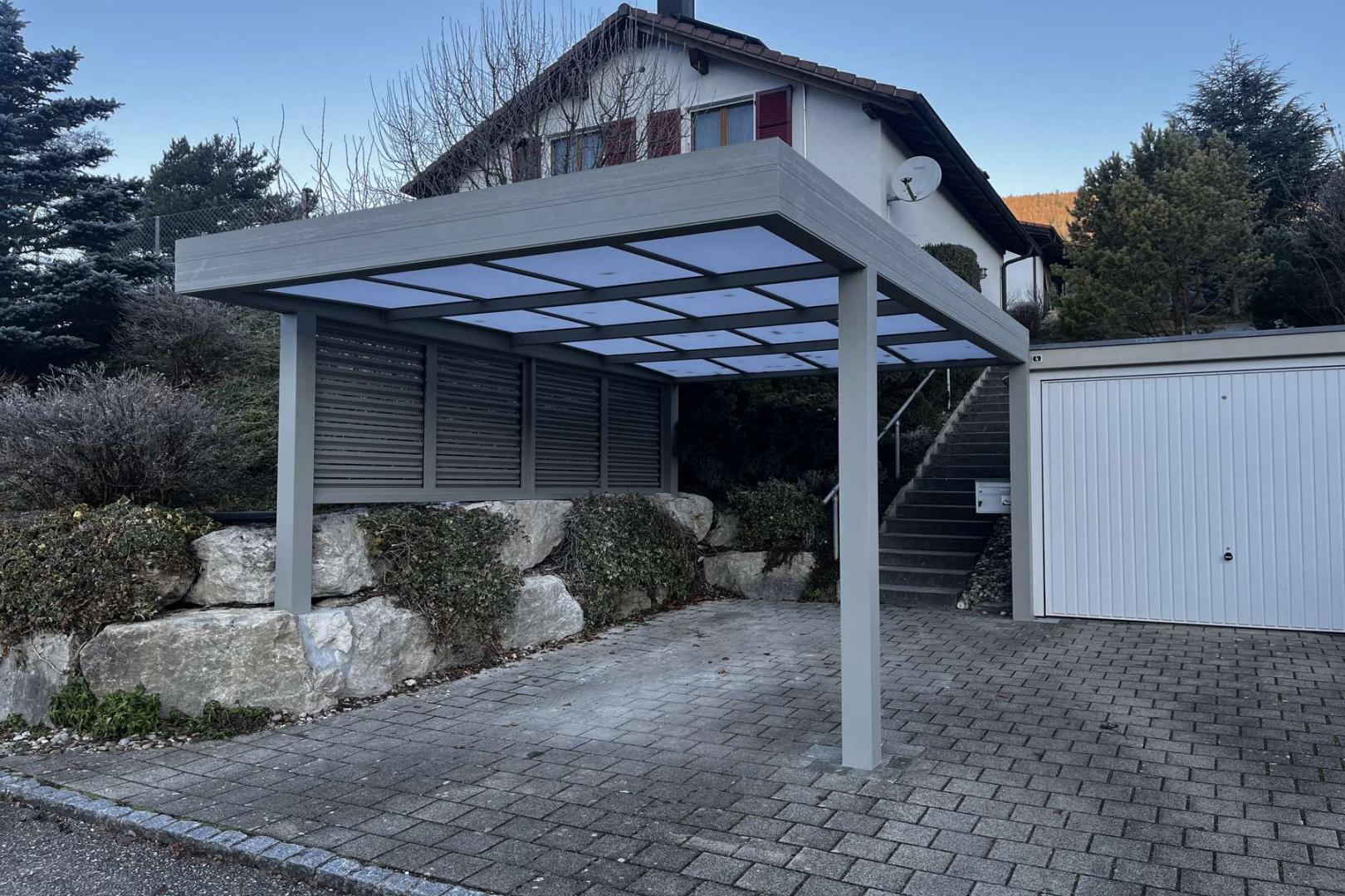 En option, le carport peut être équipé de lumière LED et de fermeture latérale.